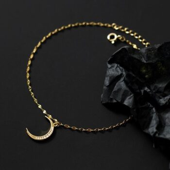 Elegant Sterling Silver Moon Anklet with Mini Zircon