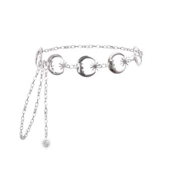 Elegant Gothic Moon Silver Pendant High Waist Metal Chain Belt for Women