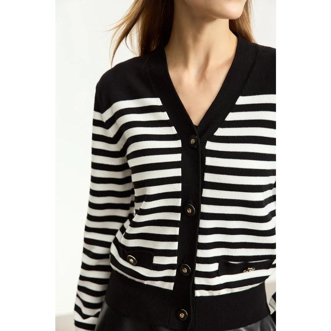 Embrace the cooler seasons in style with our Chic Striped V-Neck Cardigan. Its unique blend of elegance, comfort, and versatility makes it an essential addition to your wardrobe. Don’t miss out on the opportunity to elevate your style. Add to cart now and step into autumn with confidence and sophistication.