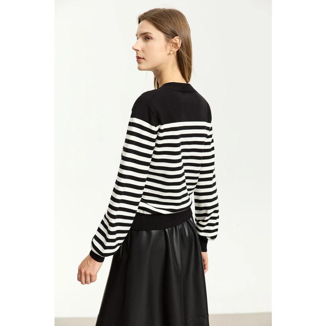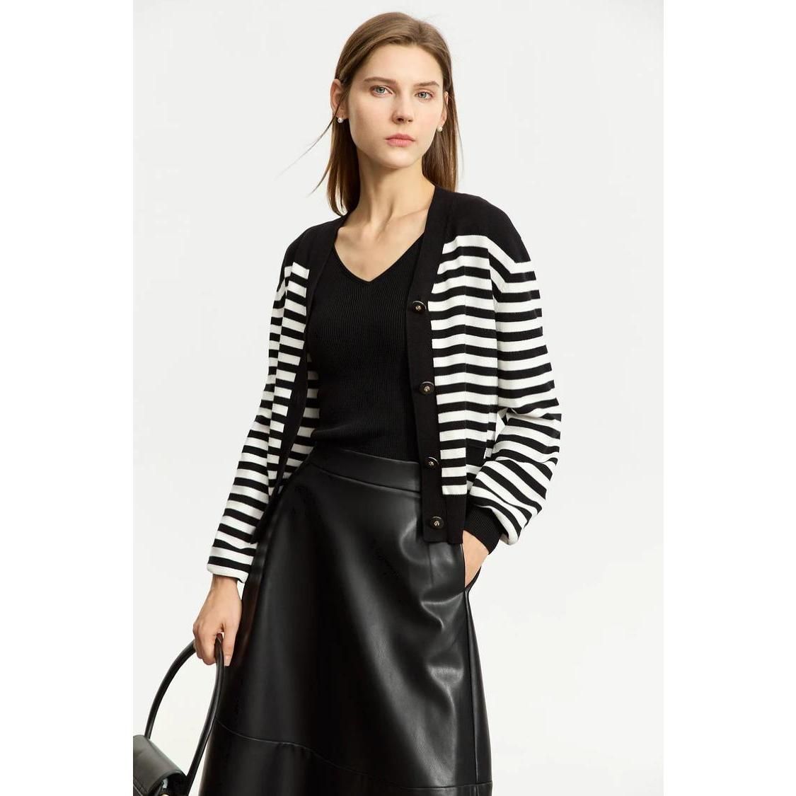 Introducing our latest addition to your autumn wardrobe – the Chic Striped V-Neck Cardigan. Blending elegance with comfort, this piece is a testament to modern sophistication and a must-have for the stylish, contemporary woman. Whether you’re in the office or out for a casual day, this cardigan offers the perfect balance of style and practicality.