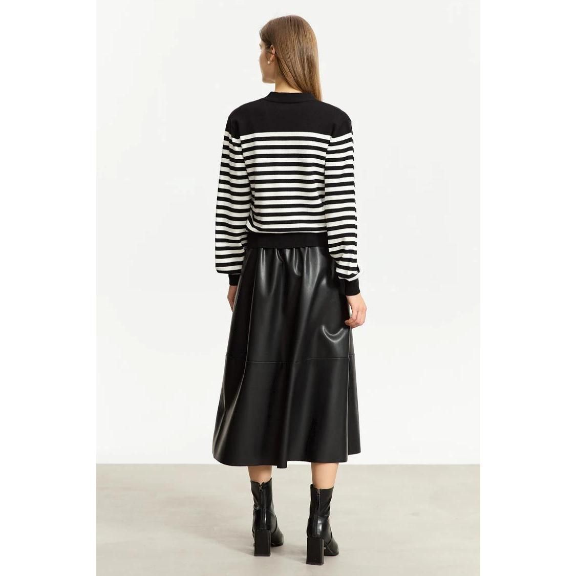 Our cardigan features a classic striped pattern, exuding a timeless French charm. The open-stitch design allows for a relaxed fit, making it an excellent choice for those seeking both style and comfort. Crafted from a premium blend of 70% viscose and 30% polyester, it promises durability and a soft touch against your skin. The full-length sleeves and standard thickness make it ideal for the cooler autumn and winter days, providing warmth without the bulk.