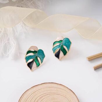 Trendy Green Geometric Stud Earrings with White Trapezoidal Pendant for Women