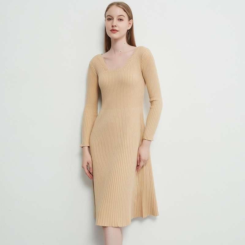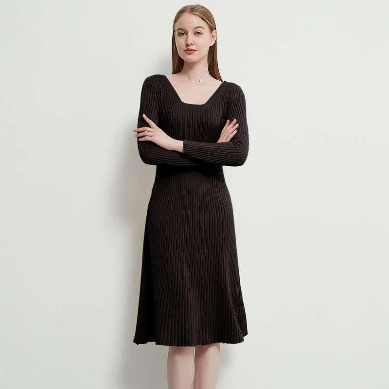 The Elegant Midi Sweater Dress is your go-to choice for a range of occasions, from a casual coffee date to a sophisticated evening event. Its mid-calf length paired with a chic square collar adds a touch of class to any setting. The dress’s solid pattern and sheath silhouette make it a timeless piece that transcends seasonal trends. Whether you’re heading to the office or attending a winter party, this dress promises to keep you stylishly warm and comfortable.