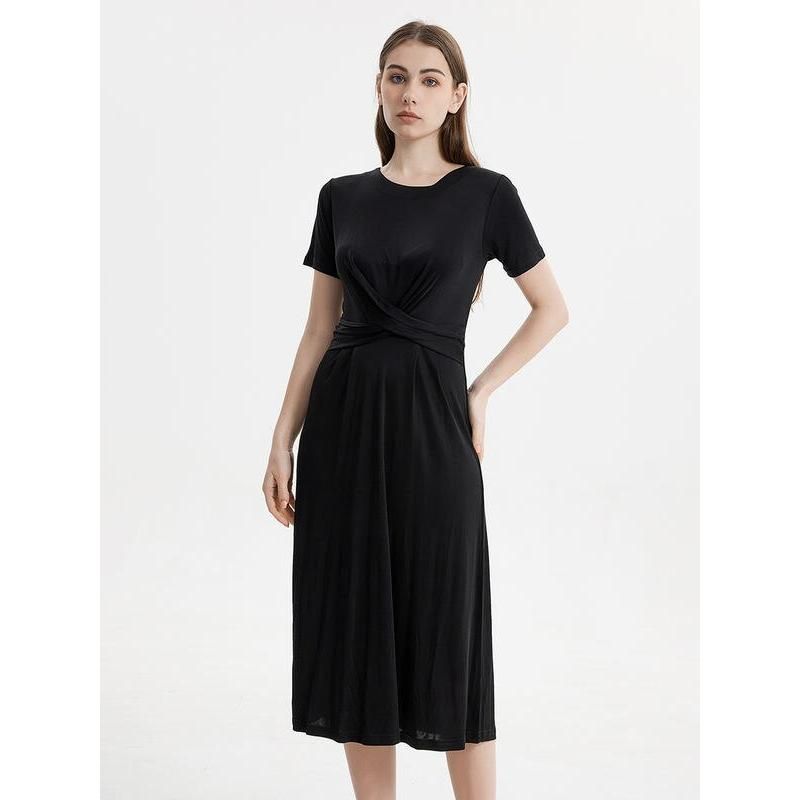 Experience the luxurious touch of our dress, meticulously crafted from a premium blend of 30% natural Mulberry silk and 70% viscose. This exquisite composition ensures a smooth, flowing drape that compliments your figure while providing unparalleled comfort. The knitted fabric offers medium stretch, ensuring a fit that’s both flattering and flexible. With its pullover closure and empire waistline, the dress is effortless to wear, yet stunning in appearance.