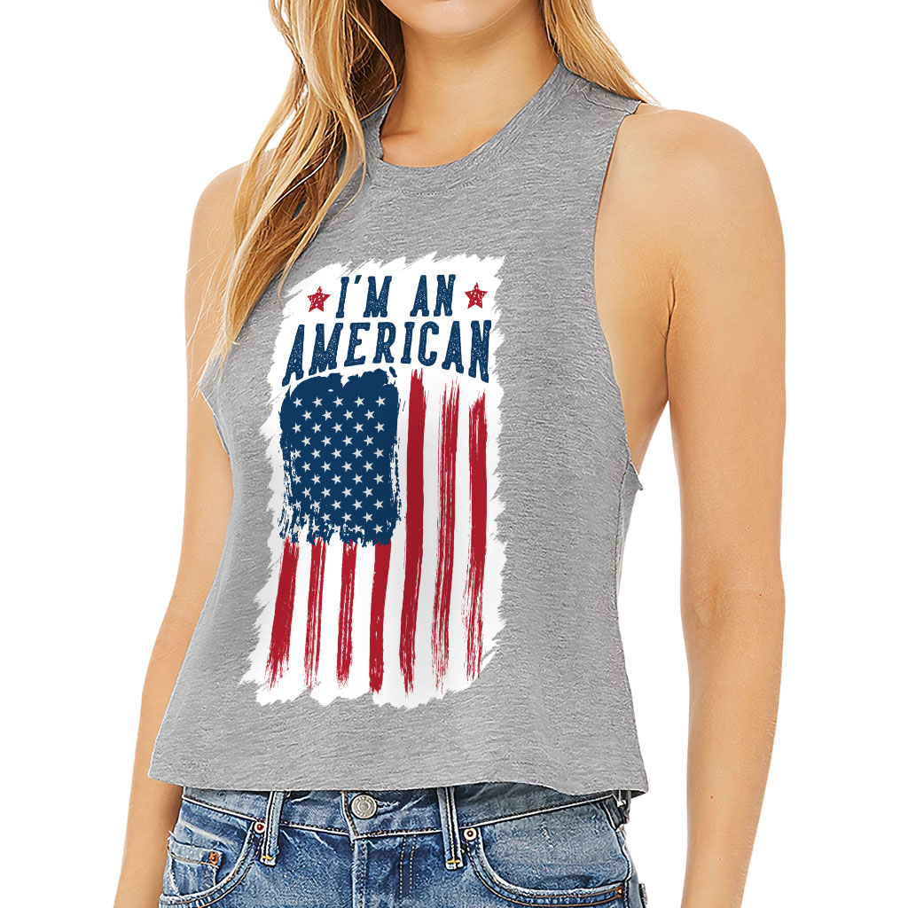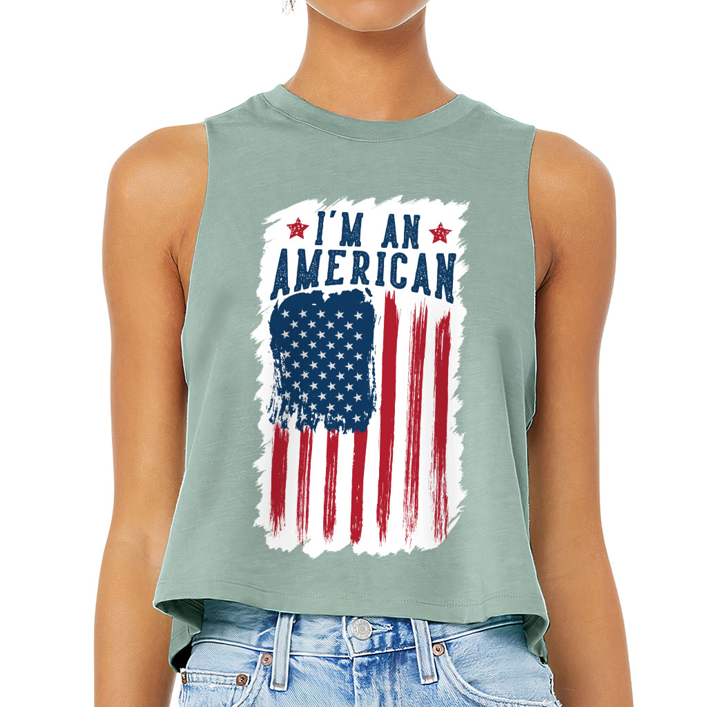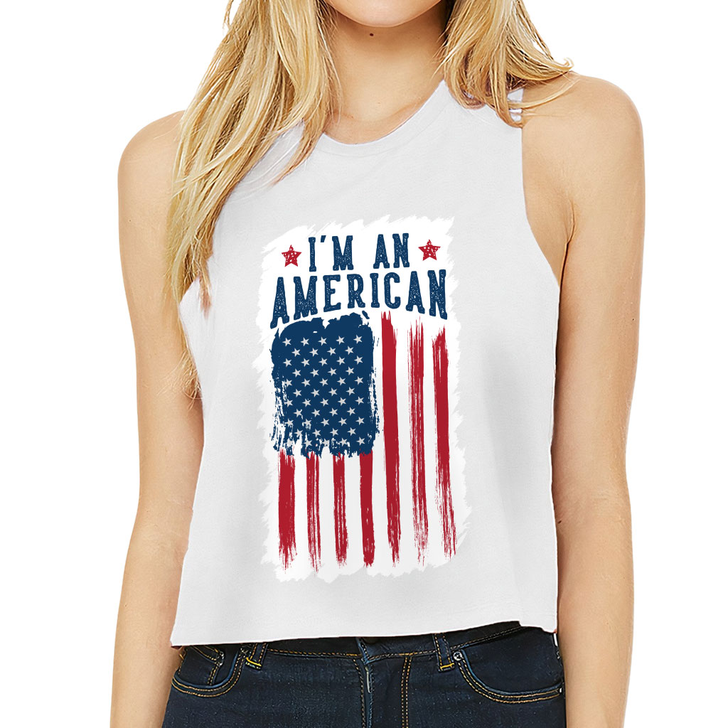 I am an American Racerback Cropped Tank – USA Flag Women’s Tank – Patriotic Tank Top
