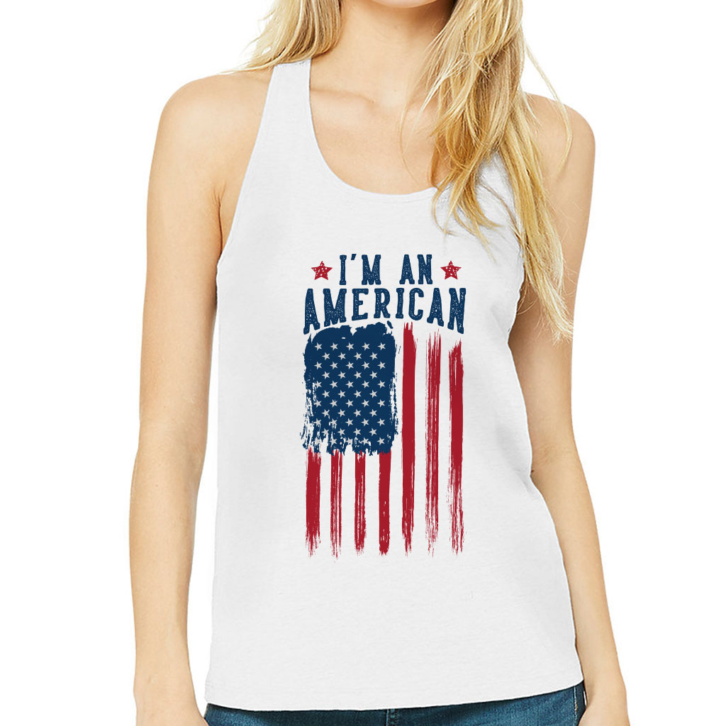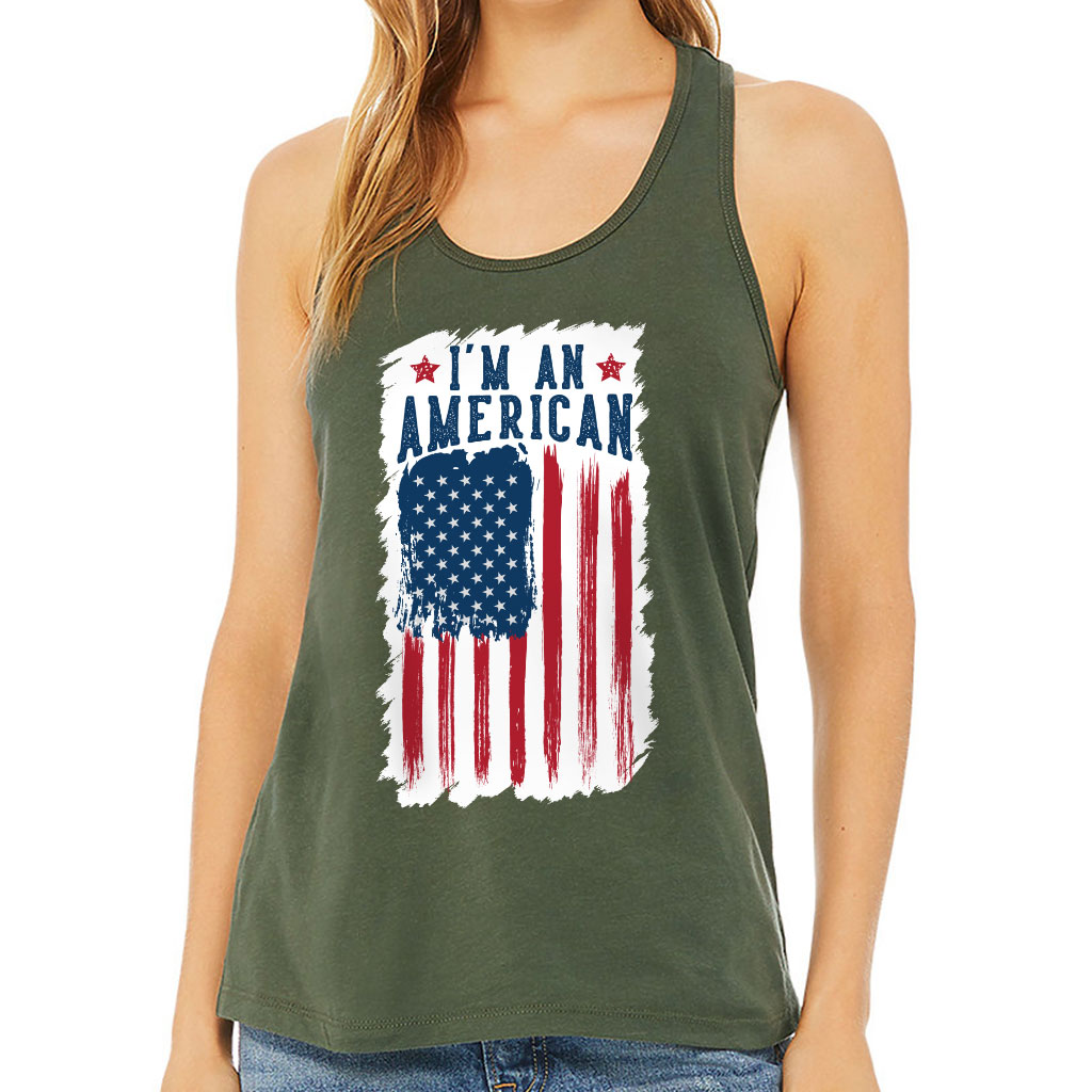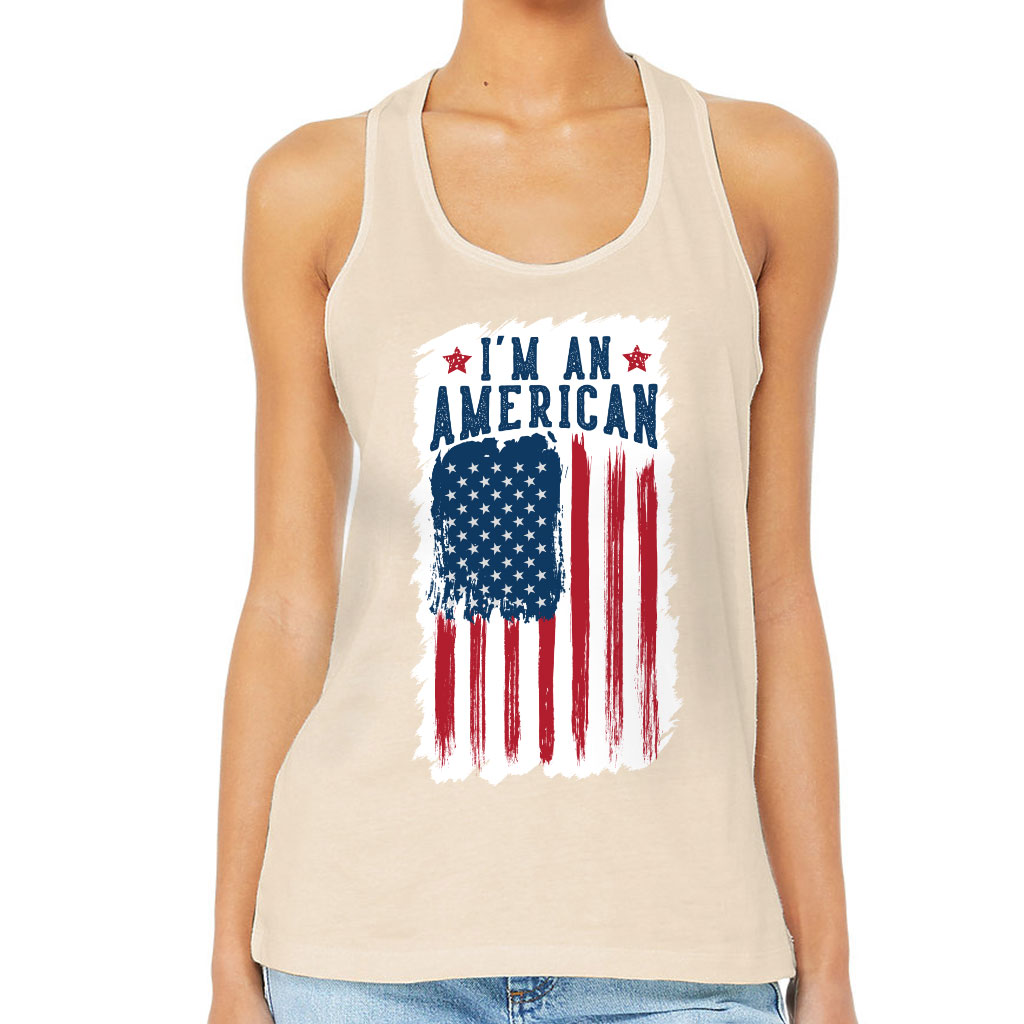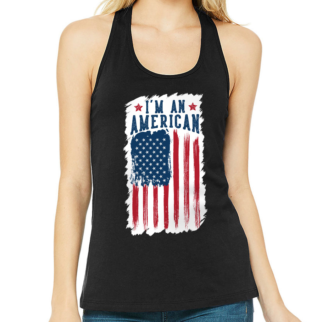 I am an American Women’s Racerback Tank – USA Flag Tank Top – Patriotic Workout Tank