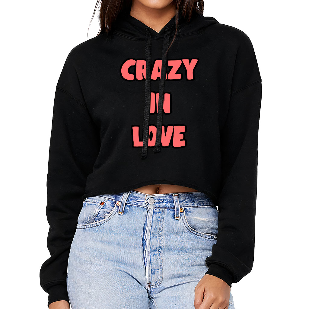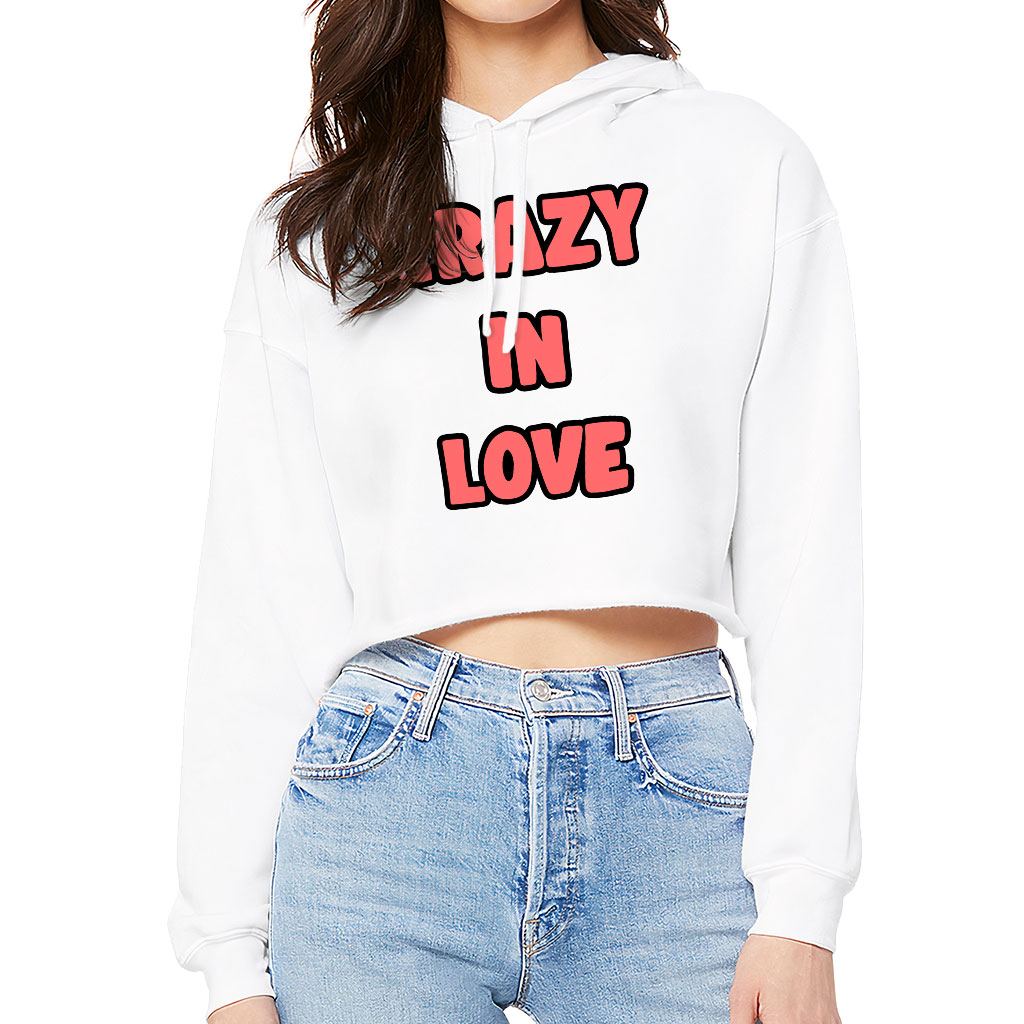 In Love Women’s Cropped Hoodie – Printed Cropped Hoodie – Cool Design Hooded Sweatshirt