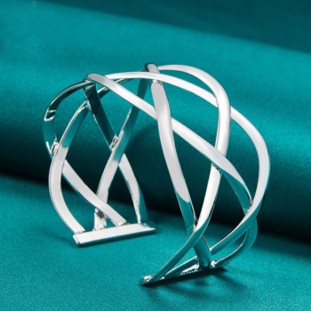 Elegant Sterling Silver Geometric Cuff Bracelet for Special Occasions