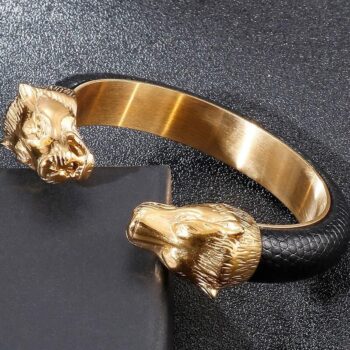 Gold-Plated Stainless Steel Lion Head Cuff Bracelet