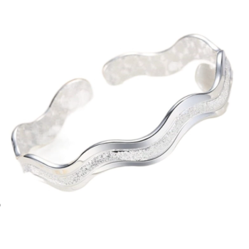 Elegant Wavy Cuff Bracelet – Silver Plated, Zircon Embellished Fashion Accessory for Women