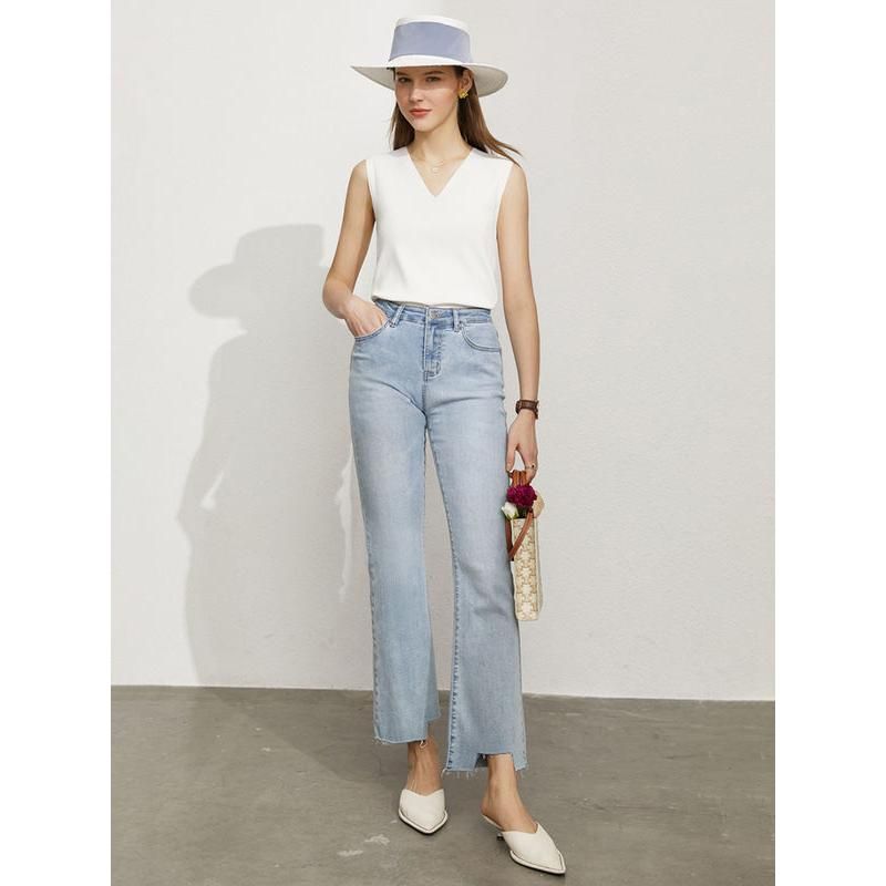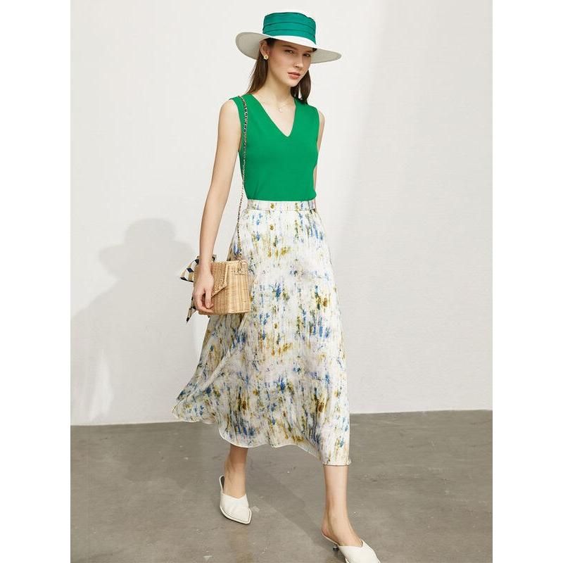 What sets this tank top apart is its elegant hyperbola V-neck design. This unique feature adds a touch of sophistication, making it stand out from typical tank tops. It’s an excellent choice for layering under blazers or cardigans for a professional look or wearing alone for a chic, casual style. The fabric’s quality and the top’s overall design ensure longevity, making it a valuable addition to your wardrobe.
