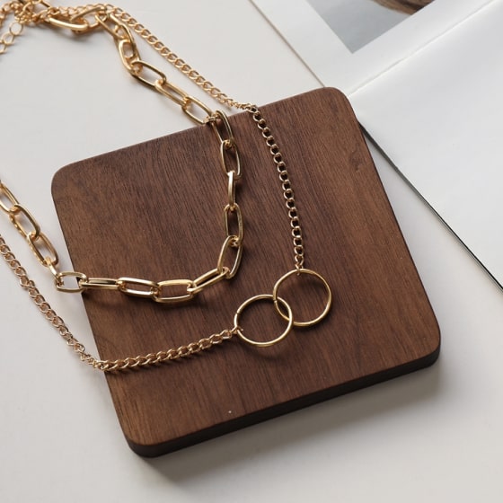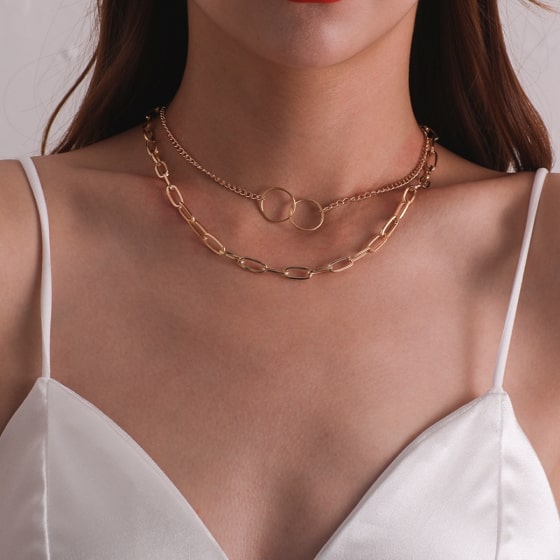 A gold necklace is much more than a simple piece of decoration. The right necklace will highlight your look and brighten your attire. Enrich your style with this elegant interlocking circle necklace.