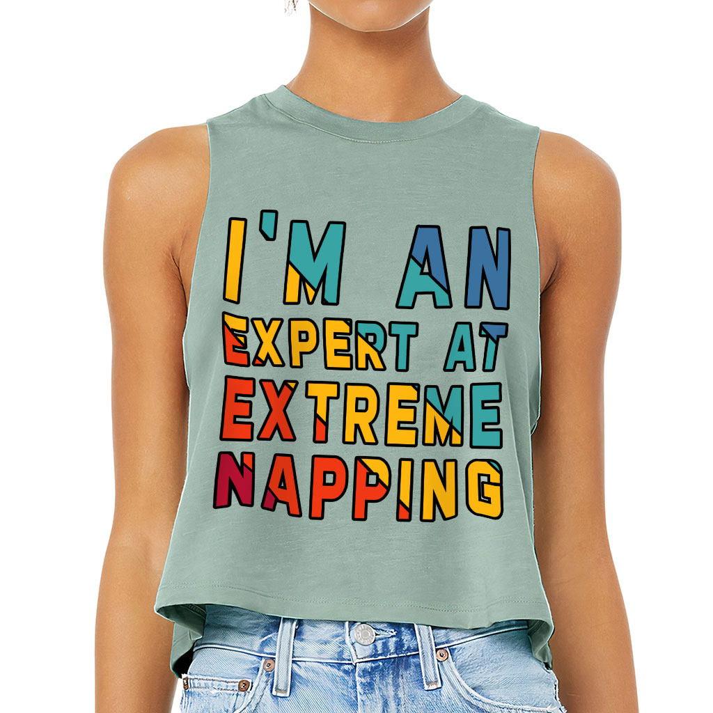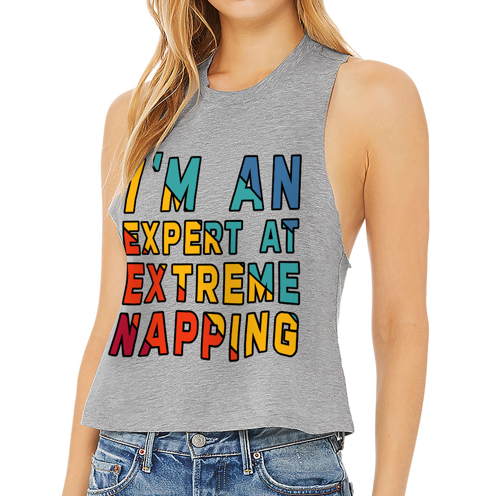 Napping Racerback Cropped Tank – Funny Women’s Tank – Cool Quote Tank Top