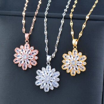 Gold-Plated Crystal Flower Pendant Choker