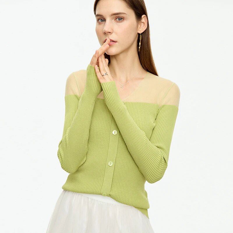 Slim-Fit V-Neck Patchwork Sweater for Women