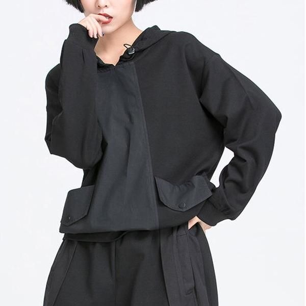 Introducing our Women’s Black Pocket Split Joint Drawstring Big Size T-shirt – a perfect blend of comfort, style, and versatility. This hooded long sleeve tee is designed to elevate your fashion game while providing the utmost comfort for all seasons.