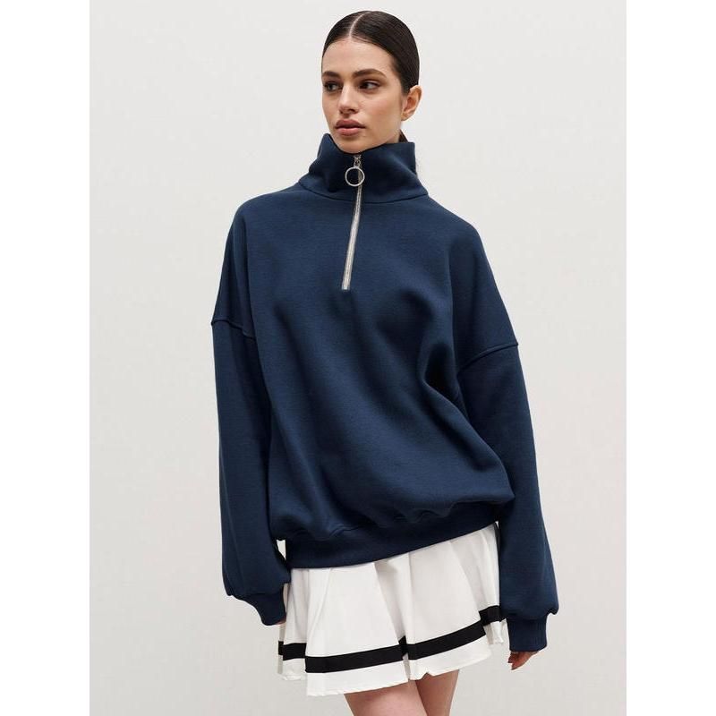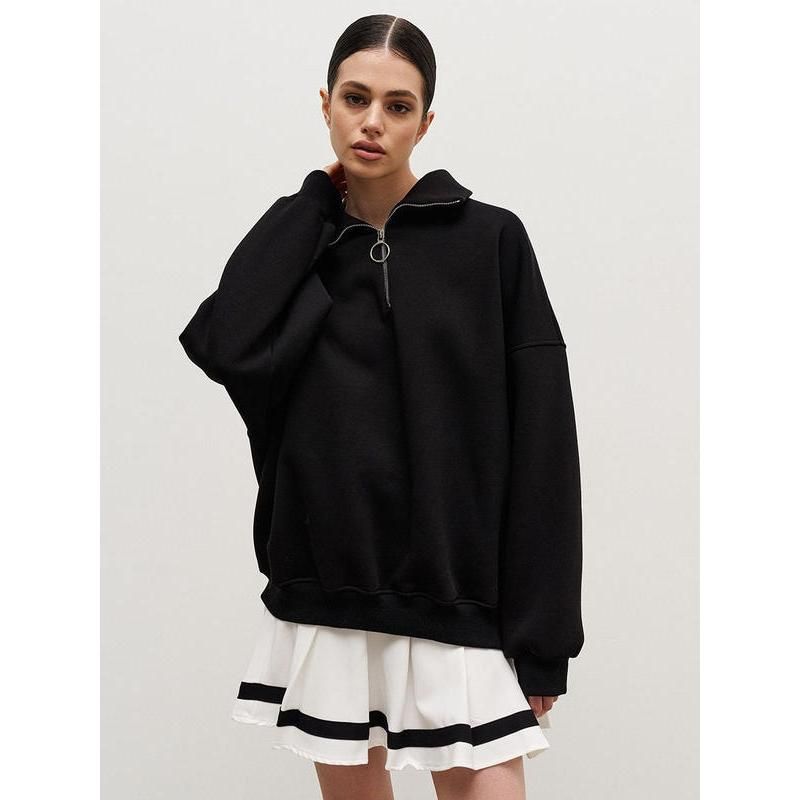 Our sweatshirt stands out with its unique blend of style and practicality. The combination of cotton and polyester offers the perfect balance between warmth and breathability. Its oversized design provides a modern, relaxed fit, while the turn-down collar adds a sophisticated touch. The full-length sleeves and standard thickness make it an ideal choice for cooler days, ensuring you stay warm without compromising on style.