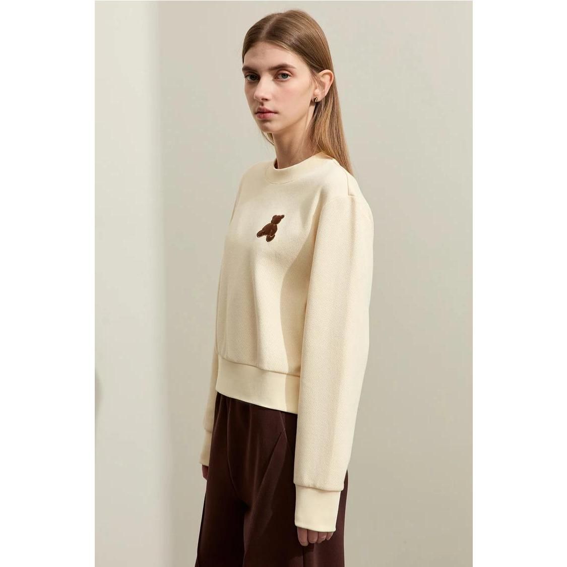 What sets this hoodie apart is its adorable bear applique embroidery, adding a touch of playfulness and uniqueness to your outfit. Crafted with a blend of high-quality cotton and polyester, it offers both durability and softness. The straight, regular-fit design flatters any body type, while the drop sleeves add a trendy twist to the classic pullover style.